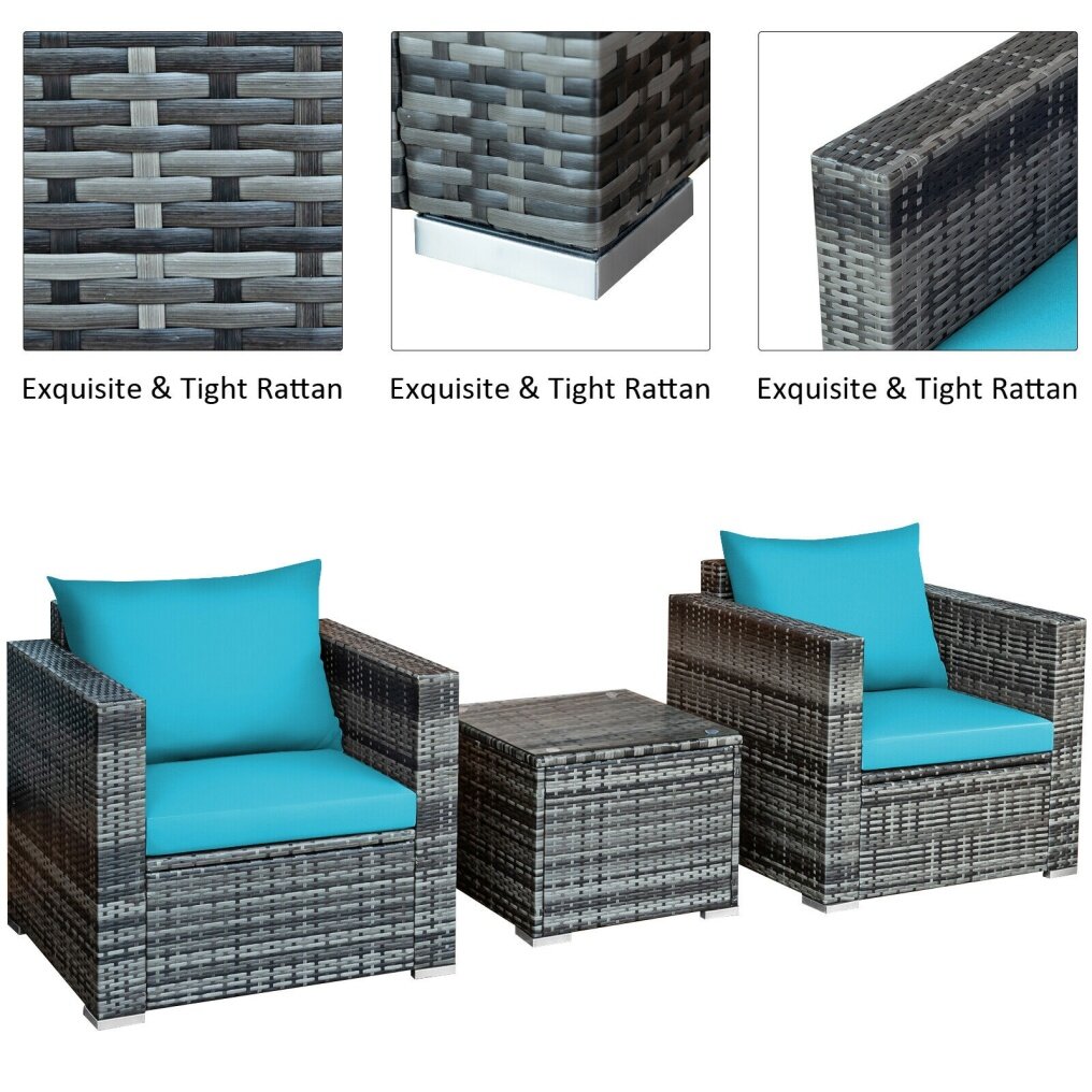 ● Steel Frame with Exquisite Rattan: The frame of this patio furniture set is made of steel and wrapped with PE weather-resistant wicker which ensures stability and durability. And the set can withstand the moderate change of weather in outdoor space.