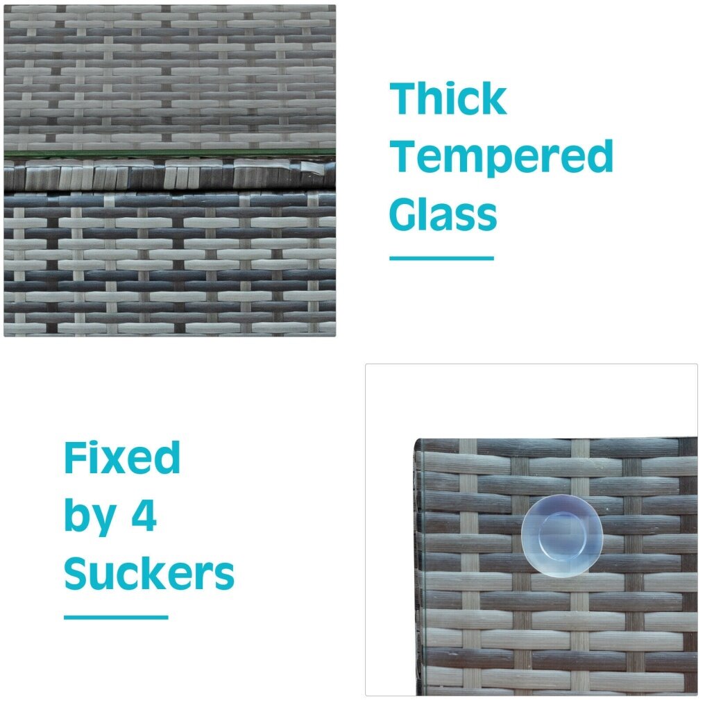 ● Tempered Glass Top Table: Comes with a coffee table, the sofa set is great for having snacks or evening drinks. There is a thick tempered glass table on the top which has the function of heat resistance and shock resistance. And the top glass is fixed by four suckers tightly so that the glass won’t move when you are using the table.