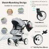 With the comfortable pad designed to perfectly support your baby's back, he or she will enjoy the sweetest of dreams as they nap, and the most enjoyable rides as you stroll. The adjustable strap on the backrest allows your baby to sleep, sit, and lie down. The removable foot cover can withstand the cold wind and keep your baby warm. The net windows around the stroller make sure you can check your baby at any time. The universal front wheels together with the shock-proof rear wheels make the stroller suitable for various roads to ensure a smooth roll at all times. Even better, the foldable design is easy to store and carry.