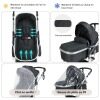 With the comfortable pad designed to perfectly support your baby's back, he or she will enjoy the sweetest of dreams as they nap, and the most enjoyable rides as you stroll. The adjustable strap on the backrest allows your baby to sleep, sit, and lie down. The removable foot cover can withstand the cold wind and keep your baby warm. The net windows around the stroller make sure you can check your baby at any time. The universal front wheels together with the shock-proof rear wheels make the stroller suitable for various roads to ensure a smooth roll at all times. Even better, the foldable design is easy to store and carry.