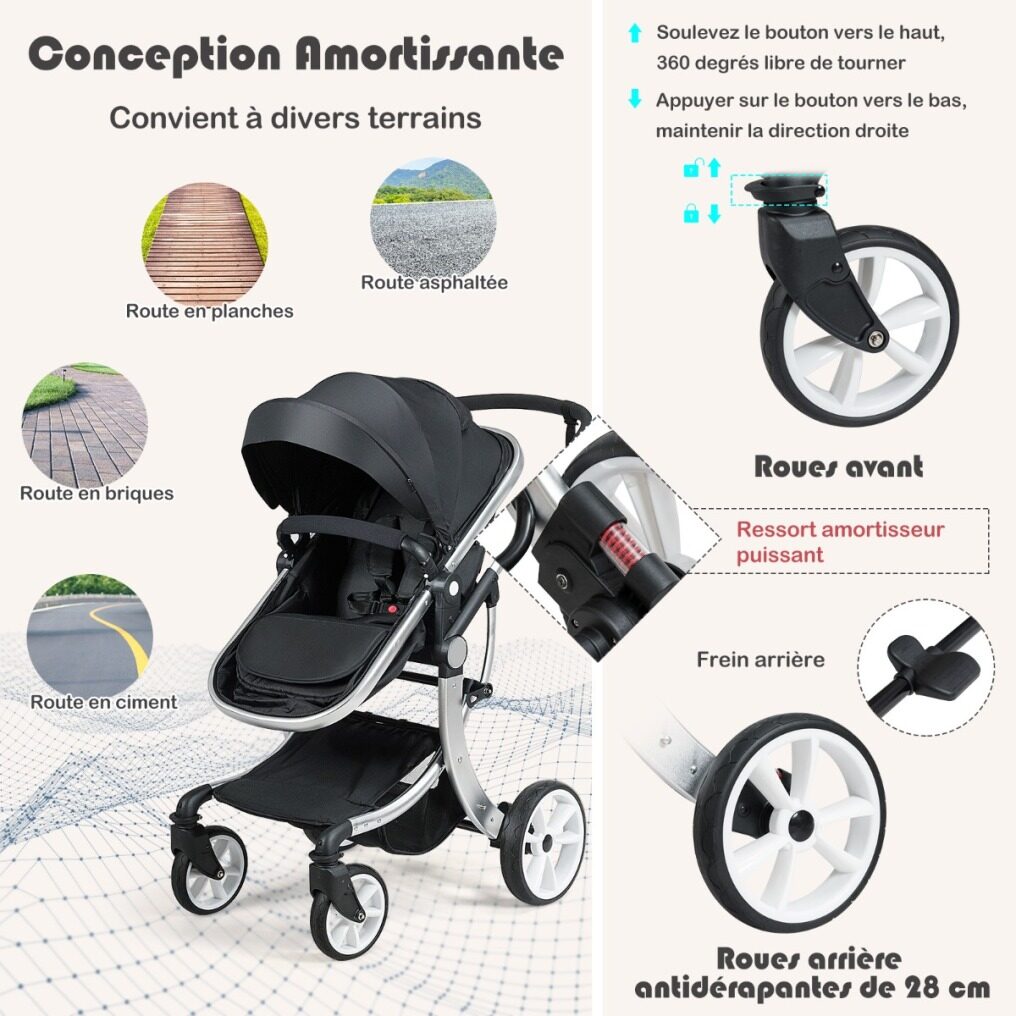 - Universal front wheels and shock-proof rear wheels suit even uneven roads
