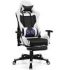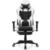 Its thick sponges and high quality air rod provide excellent stability and comfort for you. The curvature of the back of the chair conforms to ergonomic design and will give you the same comfort as in a cradle. The pillow and waist cushion on the chair will support your neck and waist perfectly. The back of this racing chair can be extended at 180 degrees, so you can adjust it to your desired comfortable angle. The chair also has one considerable foldable feet shelf, which gives your legs support when you sleep on the chair. And it can be conveniently retracted on working and playing modes. Five rolling wheels at the bottom ensure the 360-degree rotation and smooth movement in all directions. Meanwhile, this chair is equipped with a headrest and a massage lumbar cushion. It can support your waist and effectively reduce the fatigue, so that players will keep a great state in the game for a long time.