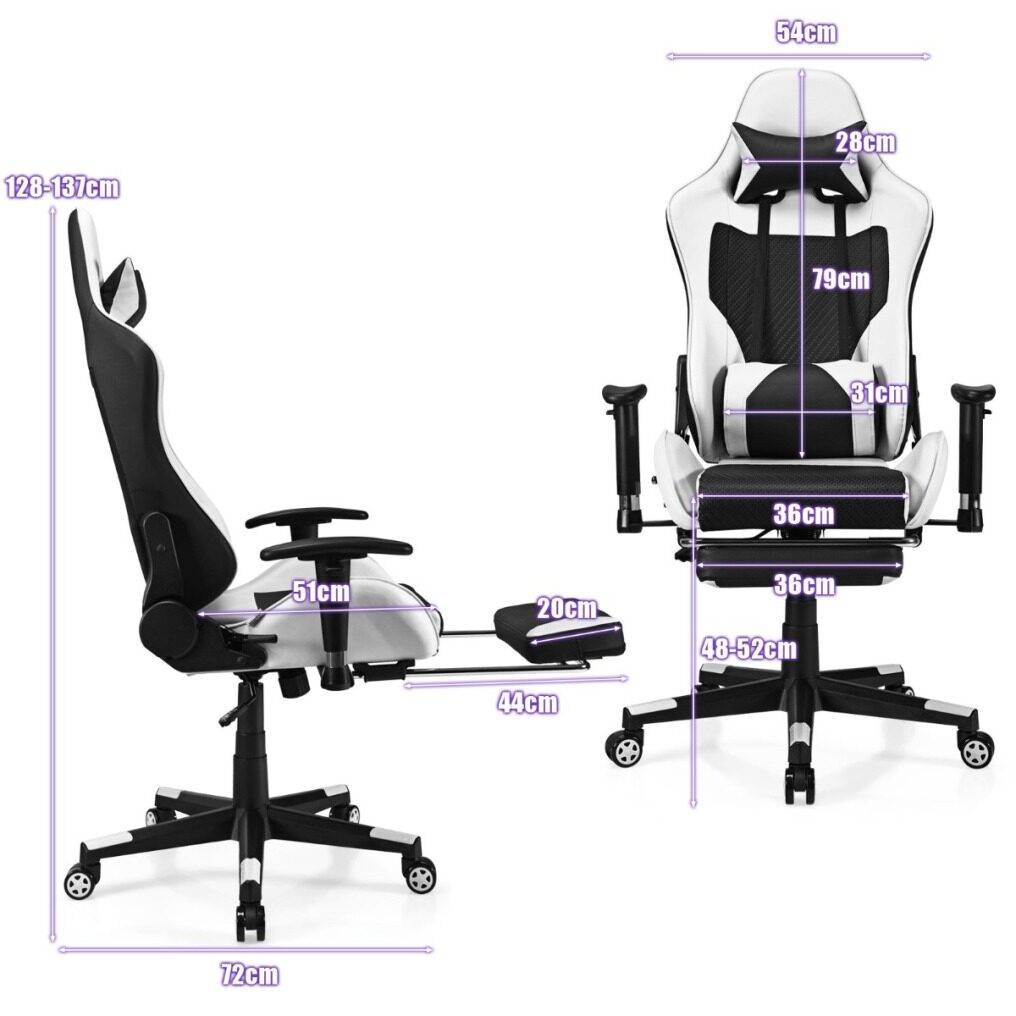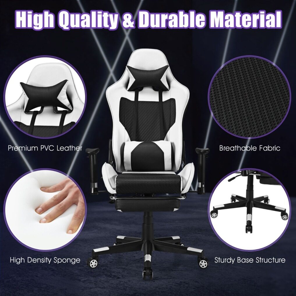 Sitting and Lying Double Use: The back of this racing chair can be extended at 180 degrees, so you can adjust it to your desired comfortable angle. The chair also has one considerable foldable feet shelf, which gives your legs support when you sleep on the chair. And it can be conveniently retracted on working and playing modes.