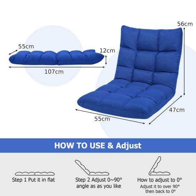 This floor chair can be easily adjusted to 14 different positions and quickly adjusted to your favorite position.