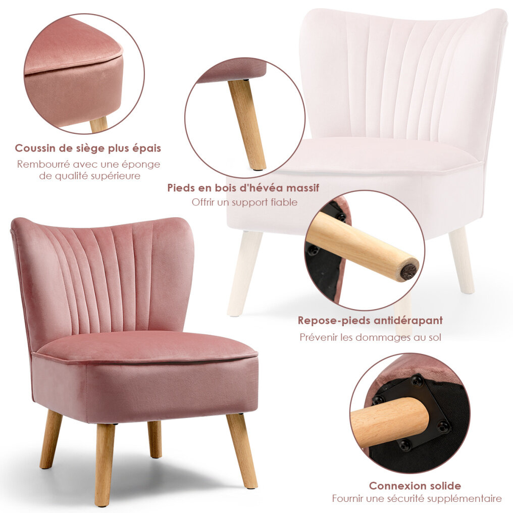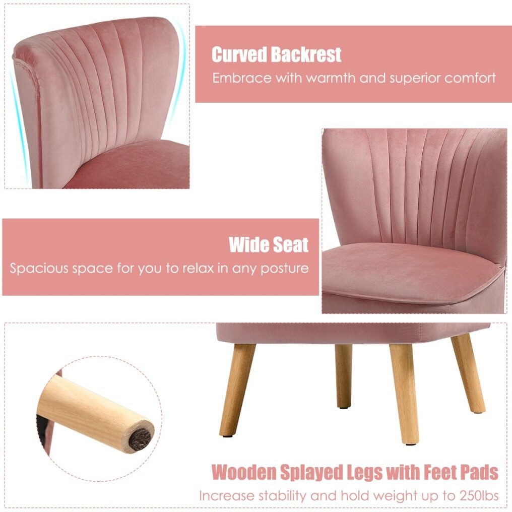 Bring a noble and luxurious look to your home with the velvet leisure chair. Perfect for either home or workspace, the accent chair will be the highlight of your living room, bedroom, dining room, and office to provide a comfortable sitting experience. Crafted of rubberwood, the chair of splayed legs provides sturdy construction and strong bearing strength. Filled with a thicker sponge, the seat enables you to have a superior comfortable feeling even sitting for a long time. Curved ergonomically, the wide backrest allows you to lean against it to alleviate back fatigue. Skin-Friendly velvet upholstery with high gloss and noble appearance will be certainly striking