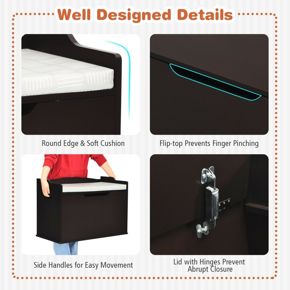 Slow closing lid instantly hides your piles of stuff away, transforming a cluttered room into a neat and orderly living heaven. Also, this storage cabinet can not only be used as a locker, but also as a small bench for the children. The kids can read books here and nurture their minds and hearts during the process of cleaning and organizing. The elegant appearance effortlessly coordinates with your existing home decor and is suitable for entryways, bedrooms, playrooms, etc.
