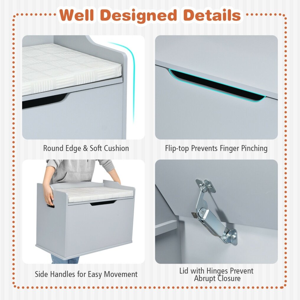 Playroom organization has never been easier with this spacious toy box. When opened, its large capacity creates an order for any clutter or chaos.