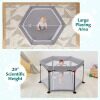 Large Play Area & Scientific Height: The hexagonal playpen features a diameter of 134cm, providing the child with roomy space to sit, crawl, lie down and place toys. Moreover, a zippered door enables kids to have easy access, and the surrounding mesh enclosure with 74 cm scientific height allows kids to safely play inside, avoiding potential injuries caused by any climbing.