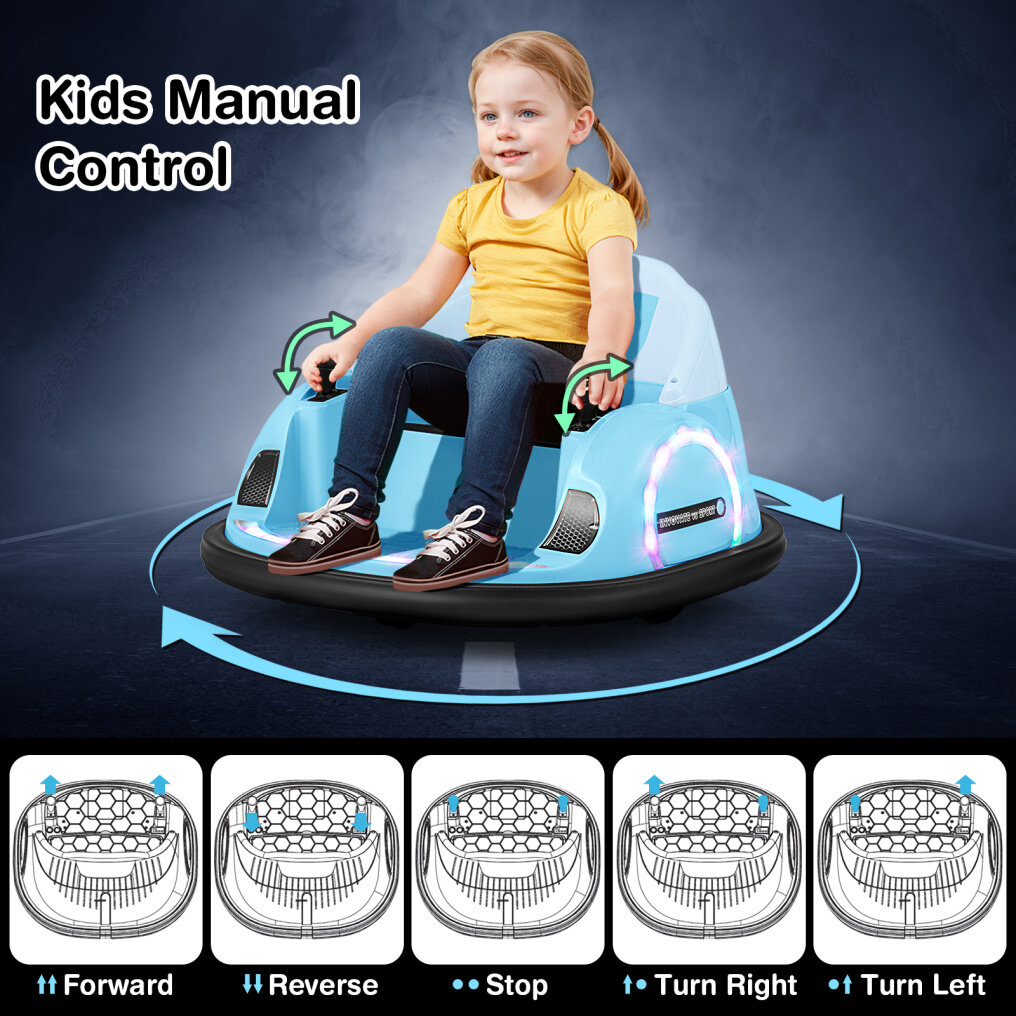 ● Fabulous Performance: Illuminate the fun with dazzling flashing lights and delightful music! The bumper car features a functional panel with USB port and AUX port, and you can also connect it with wireless connection for music function. Moreover, the 25W dual motors and 12V 4.5AH rechargeable battery ensure extended pleasure time.