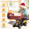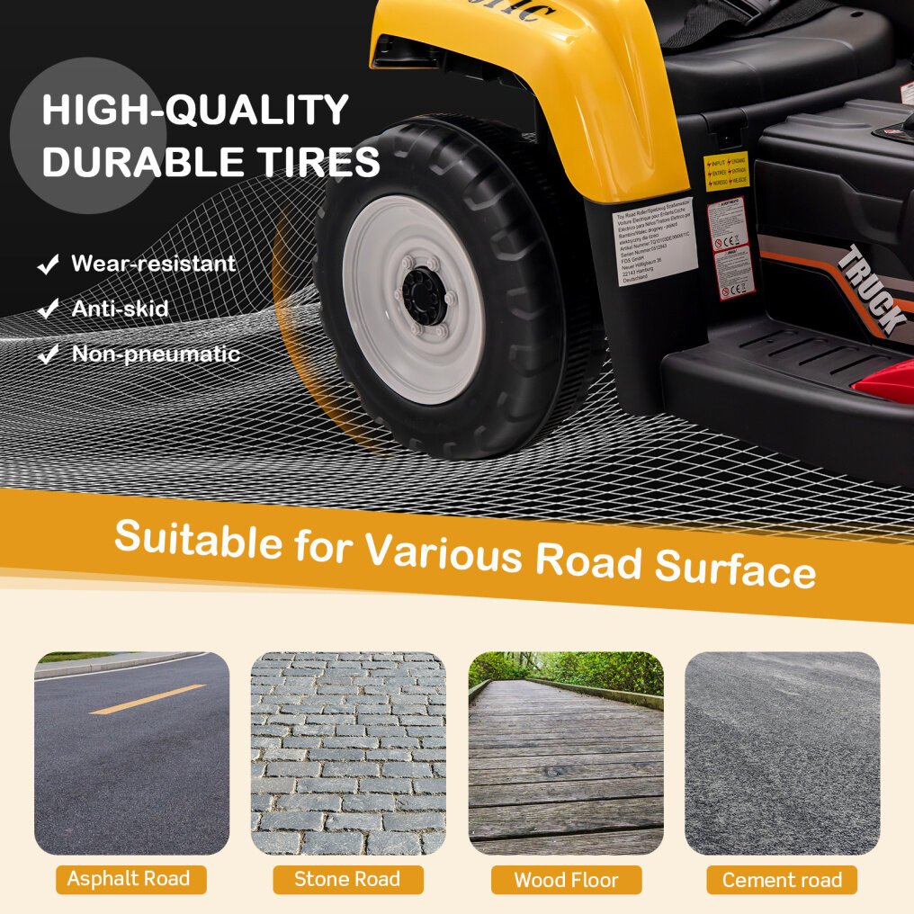 ● Manual Operation and Remote Control: Kids can use the operation lever to move forward/ backward, the steering wheel to change its direction and the foot pedal to accelerate. On the other hand, our kids' ride on excavator is also designed with remote control for parents to control this vehicle(requires 2 AAA batteries, not included).