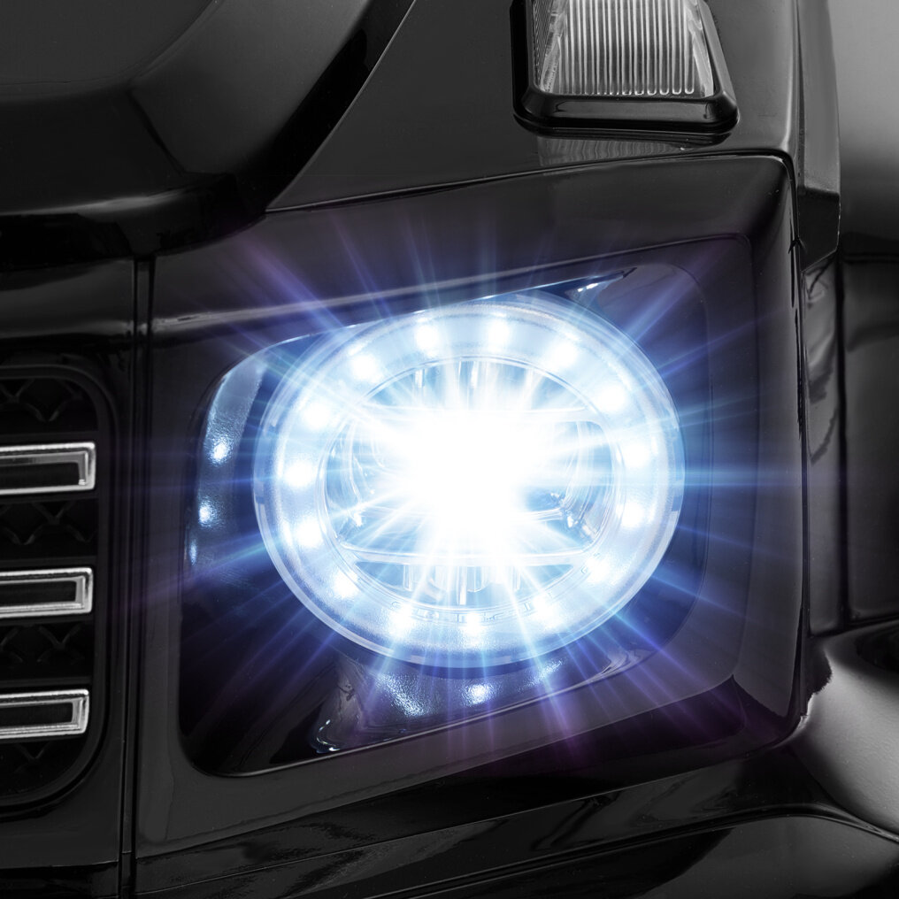 ● Licensed Mercedes-Benz G500: This ride-on car features officially licensed Mercedes-Benz G500 design, which is a perfect gift for kids on birthdays or holidays. There are 4 driving motors and an extra steering motor to provide stronger driving power. Moreover, the 12V 7 AH battery with overcharge and overload protection is safe to use.