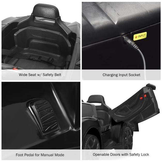 Come with a 2.4G remote control that make it possible for parents to control the speed and direction of the car, so as to free parents from concern about kids. Kids can move forward or backward at a high a low speed as well, by means of a corresponding switch. It also strikes a perfect balance between safety and comfortableness, which can be reflected in the wide seat with a safety belt, 2 doors with safety locks, soft start and stop, etc. Meanwhile, the spring suspension is designed for a smooth and stable performance with less shock. Furthermore, dynamic music, bright LED lights and loud horns can not only provide a realistic driving experience but also bring endless fun. All in all, this electric ride-on car crafted with safety material and certified by ASTM certification will be a perfect toy for your kids. If you are looking for such a product, do not hesitate to buy it!