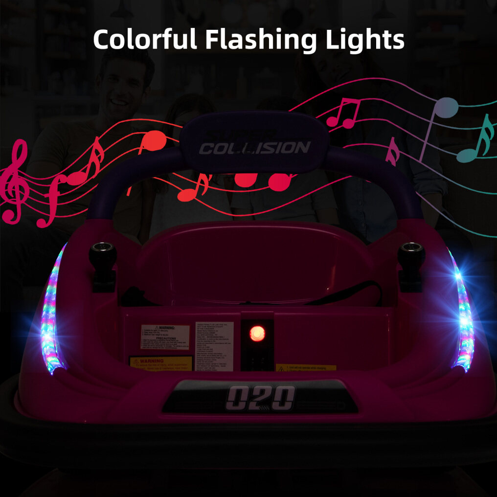 ● Enjoyable Driving Experience: The 12V bumper car has a one-button start function and includes built-in music, volume adjustment and colorful flashing lights on both sides. Various interesting functions greatly increase the fun of driving.