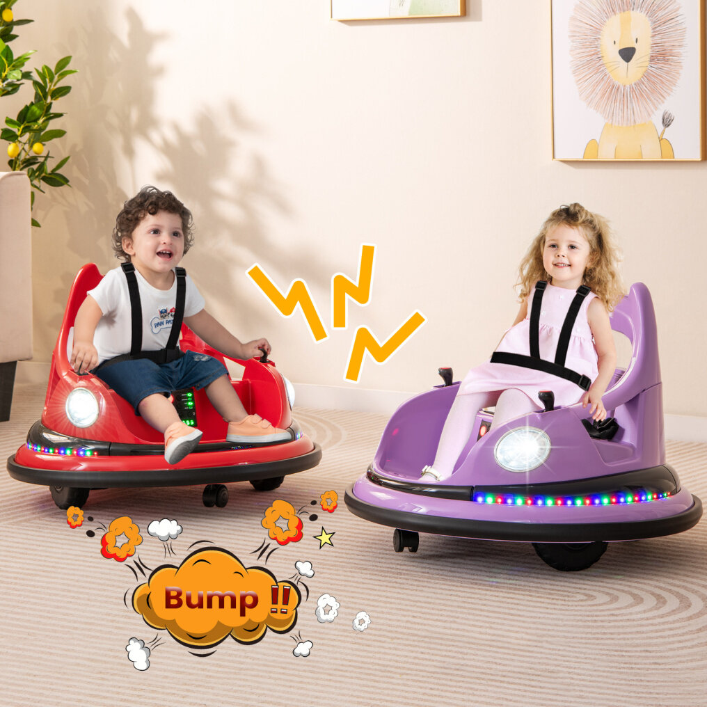 ● More Delightful Features: Apart from 360° spin, the 12V electric bumper car also has fun music and 5 light effects (red, green, blue, multi-color, or flashing lights) to better delight your kids during their riding time. Moreover, it is designed with a wireless connection to connect various devices to play kids' favorite music.