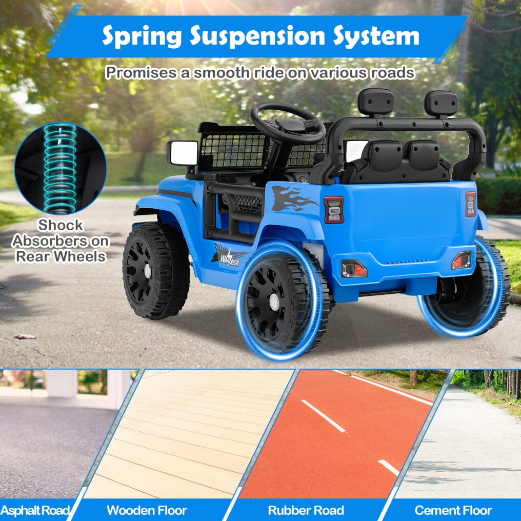 ● Safety Is Always Considered: The electric vehicle includes a spacious seat that features an adjustable safety belt, keeping your child secure in place during each adventure. Moreover, the lockable doors can prevent accidental opening to ensure a safe driving experience and offer you peace of mind.