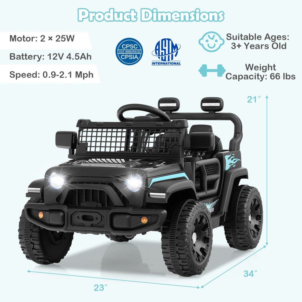 ● Entertainment on the Way: Designed with music and a horn sound, this 12V ride on toy invites children to drive for unlimited fun. The bright LED headlights, along with foldable rearview mirrors, add to the realistic experience of driving and make every drive a delightful adventure.