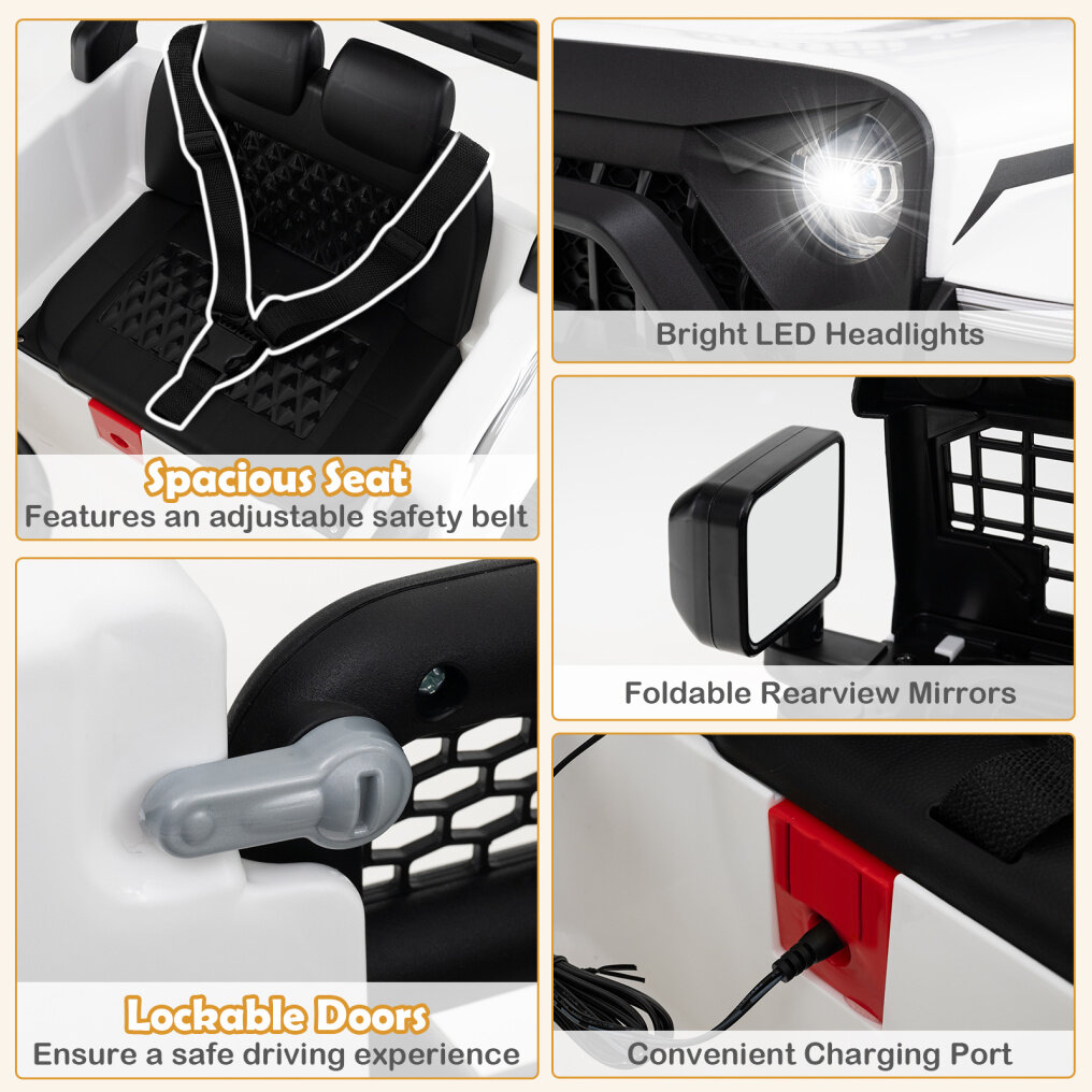 ● Safety Is Always Considered: The electric vehicle includes a spacious seat that features an adjustable safety belt, keeping your child secure in place during each adventure. Moreover, the lockable doors can prevent accidental opening to ensure a safe driving experience and offer you peace of mind.