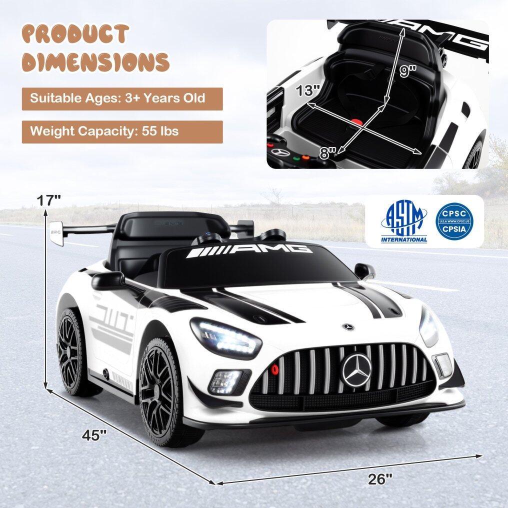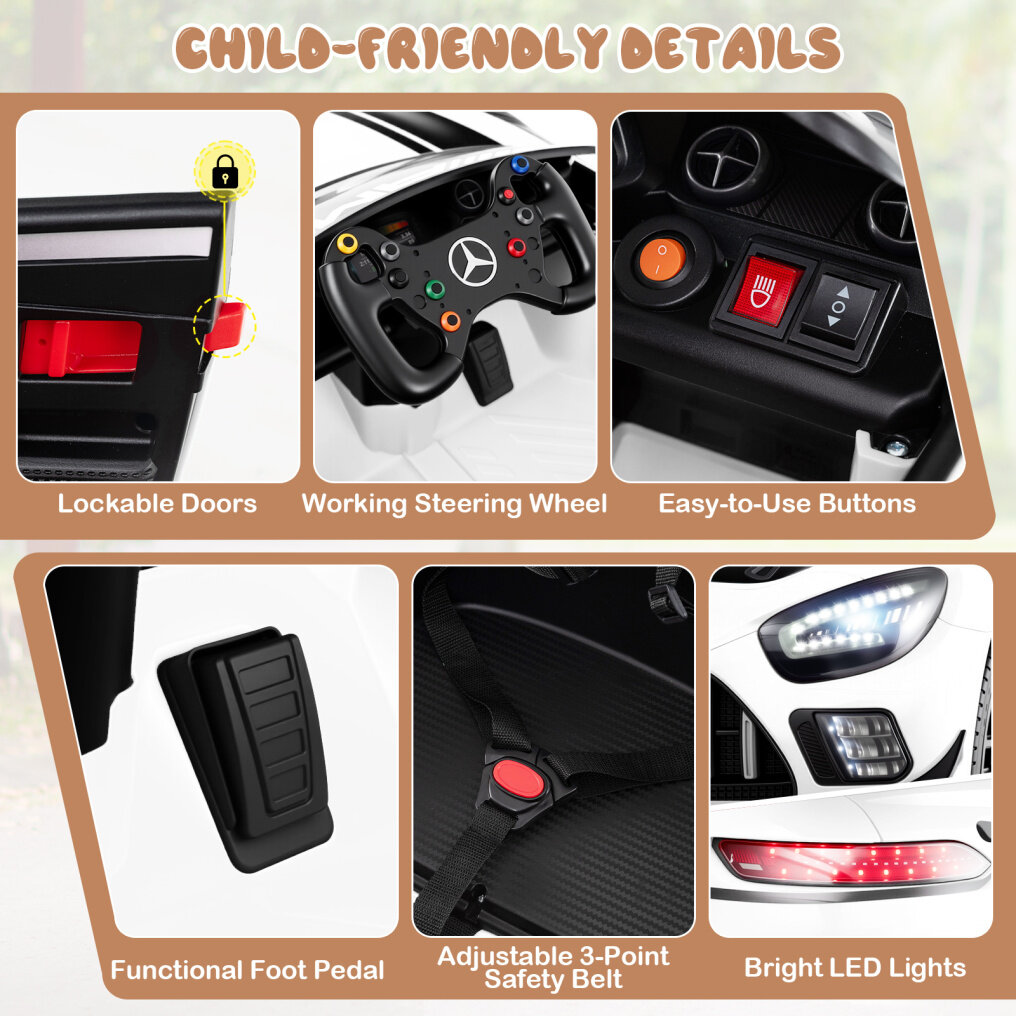 ● Licensed Mercedes-AMG GT3: From the bright LED lights to the stylish spoiler, the kids ride on car is designed to replicate the iconic style and sophistication of Mercedes-AMG. The vivid appearance combines with child-friendly design, making this electric car toy a standout presence.