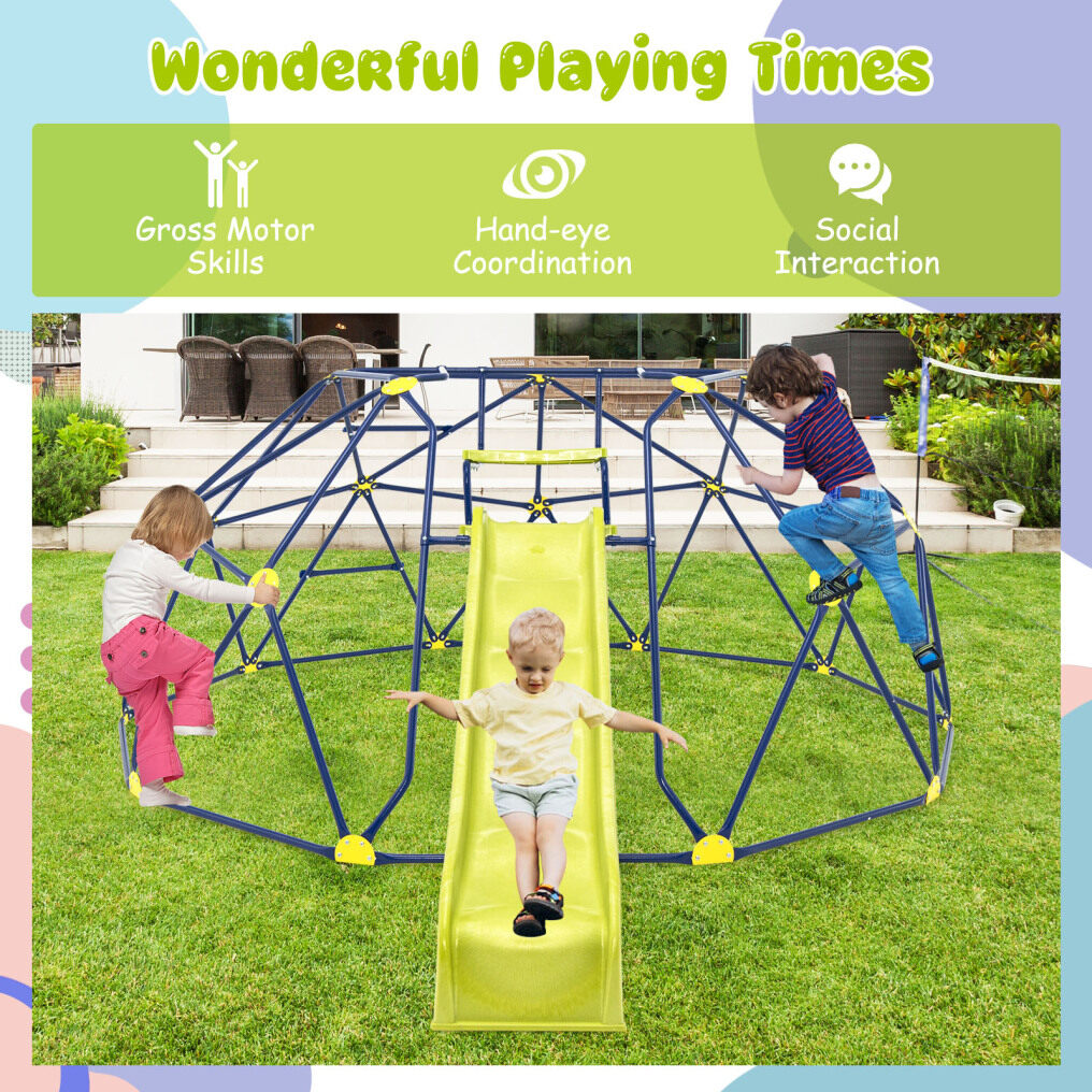 ● Stable Metal Construction: Constructed with metal pipes that are wear-resistant and anti-rust, this climbing dome prides itself on sturdiness, and is ideal for indoors and outdoors. Coupled with durable connectors, it will endure rigorous play for years to come.