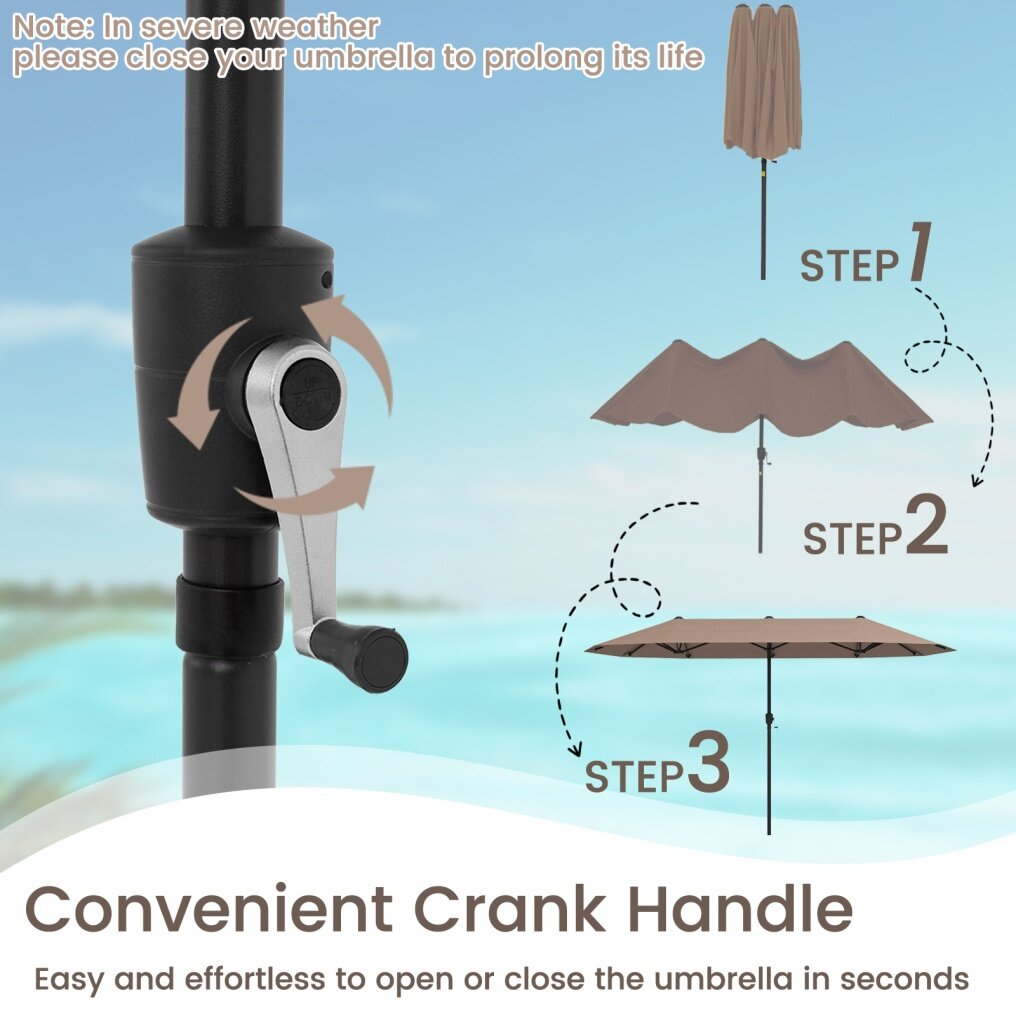 ● Extra-Large Coverage: This double-sided patio umbrella measures 13 x 7 x 7.3 ft/392 x 212 x 222 cm (L x W x H), offering a spacious shade area for your outdoor gatherings. With a 1.5"/38 mm diameter umbrella pole, it is perfect for pairing with outdoor dining tables.