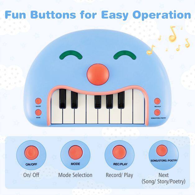 【Fun Buttons for Easy Use】The children's piano keyboard has 4 buttons allowing your little one to start the keyboard, change modes, record music, or change the song, story, or poem. There are 6 nursery rhymes, 6 stories, 6 poems, and 8 songs to choose from for children.