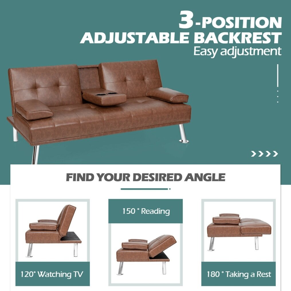 ● Finer Materials for Higher Softness: The sofa bed uses premium material to provide a comfortable sitting, reclining and sleeping experience. Filled with high resiliency sponge and sinuous spring inside, it is supposed to greatly relax your body and reduce fatigue. Besides, the PU leather with excellent breathability and soft tactility takes the softness to a high level.