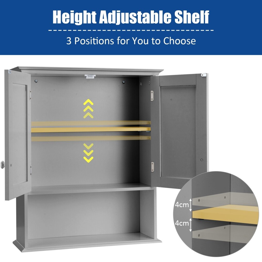 Space Saving with Hanging Design: Designed to be wall-mounted, this bathroom cabinet skillfully takes use of the suspended area for which there will be less space occupying. Featuring double opening doors, this wall cabinet efficiently prevents items from accidental falling.