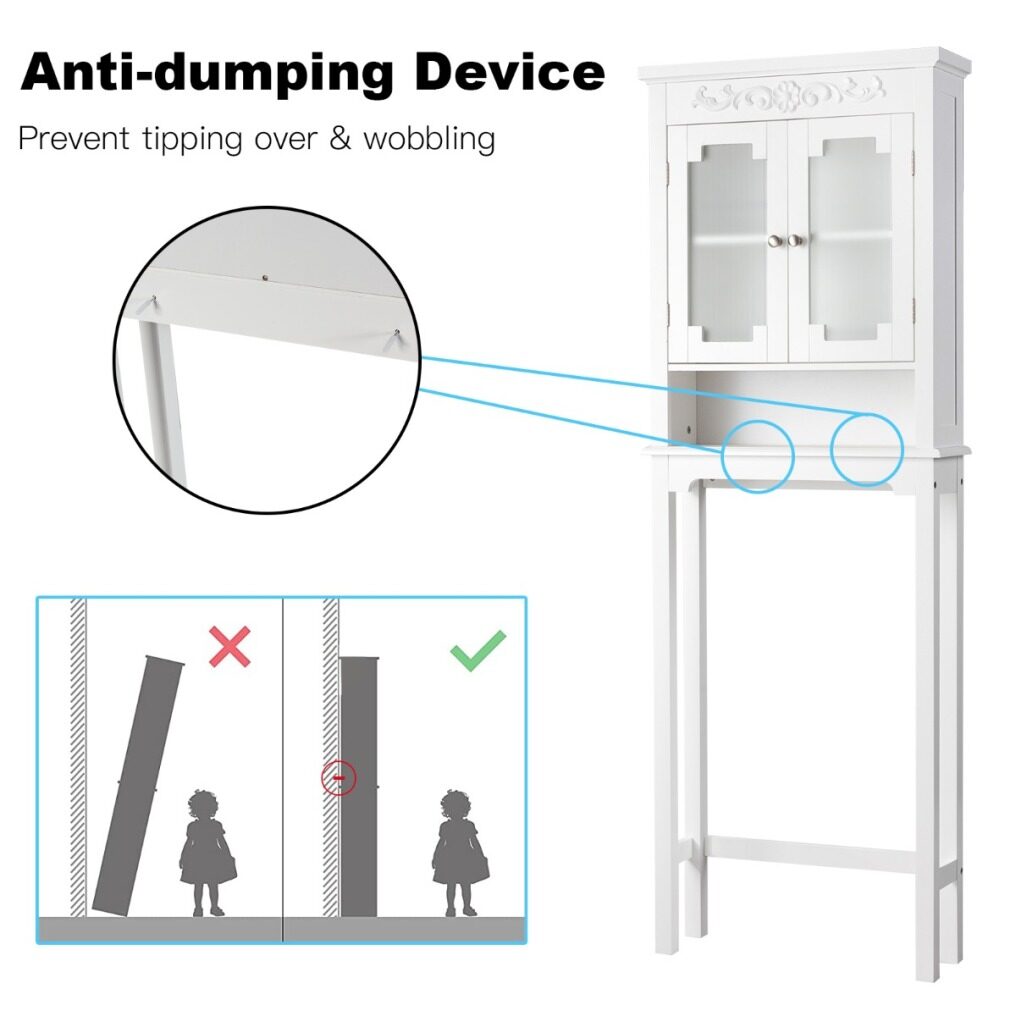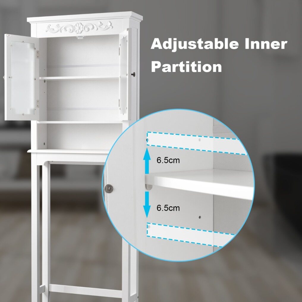 Ample Storage & Adjustable Shelf: This over the toilet shelf features a 3-tier design. The upper two layers with 2 enclosed doors can protect fragile things or keep something out of sight. With the adjustable inner partition, the shelf can fit items of different sizes. Plus, the open layer can get your items in order and within reach.