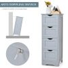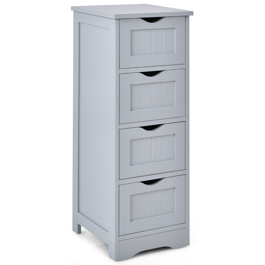Perfect Organizer for Your Bathroom! Our bathroom storage cabinet comes with 4 deep drawers and a large tabletop, providing enough space for your sundries and bathroom essentials, such as shampoos, towels, toiletries, papers, decorations, cosmetics, etc. Moreover, it is equipped with an anti-toppling device to fix the cabinet on the wall, which can effectively avoid the cabinet from wobbling or tipping over. Whether in the bathroom, living room, bedroom, or entryway, our storage cabinet can satisfy your storage needs. Featuring a vertical and compact size, this freestanding storage organizer can make full use of the limited space. With its chic and stylish appearance, this modern floor cabinet can be a perfect addition to your living space!