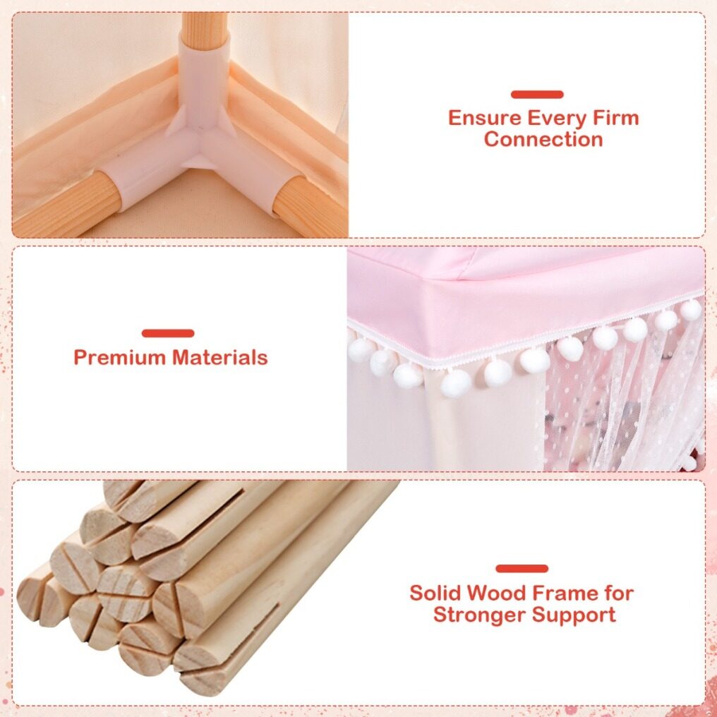 Stable Solid Wood Frame: Using solid wood as the frame, our product is super sturdy and just like a real house. Different from the traditional flimsy tent, this playhouse has stronger support for shape maintenance, which can guarantee safe in-house play for kids.