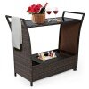 ● Convenient to Move: Designed with a handle on both sides of this rolling wicker bar cart, so it is quite convenient for you to move it anywhere. This rolling wicker bar cart comes with 4 multi-directional wheels for easy movement, which makes it perfect for outdoor use.
