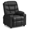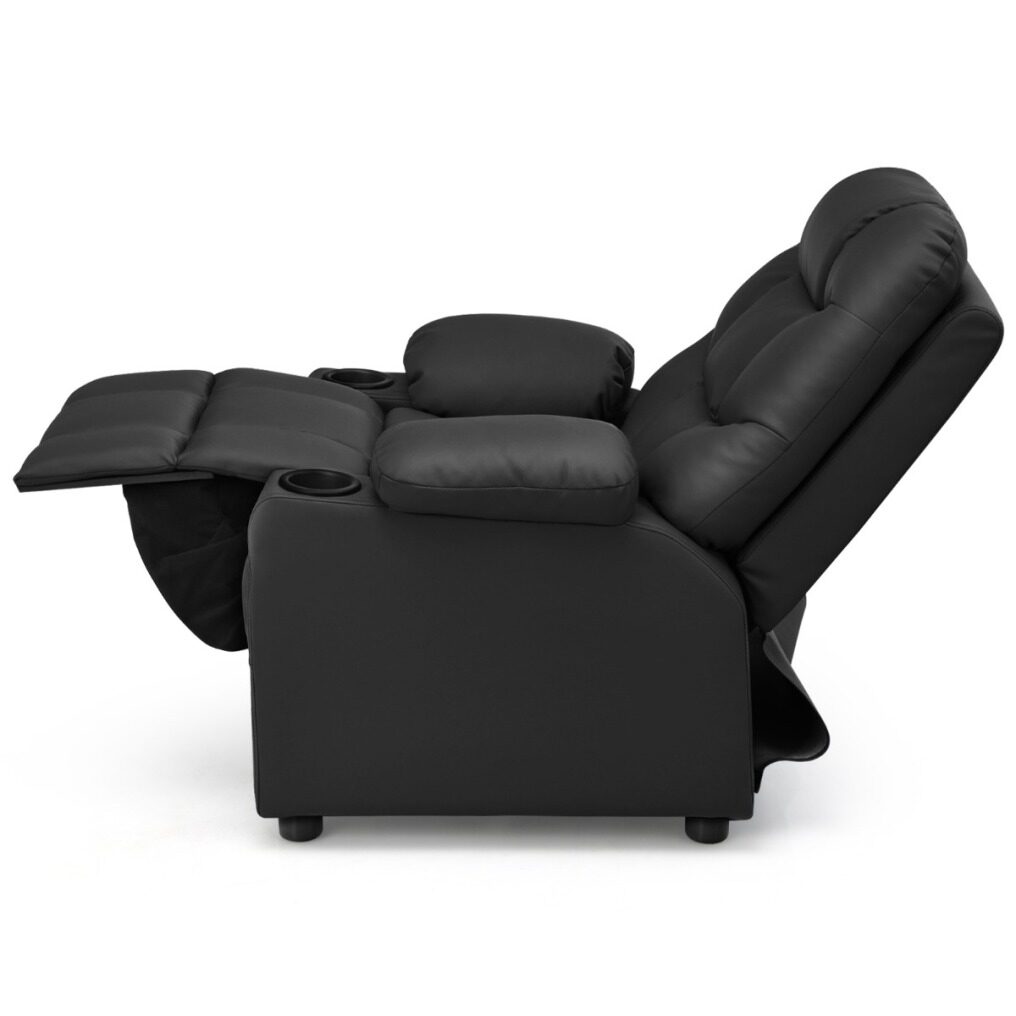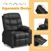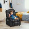 Are you looking for a versatile recliner chair for your children? Our kids recliner is a perfect choice which combines ergonomic design with stylish appearance. Solid wood frame features long-lasting performance and great sturdiness. Moreover, the reclining backrest can be easily adjusted from 90° to 130° as per your preference. Meanwhile, sponge padded seat and PU leather surface keep a good balance between firm support and good breath ability, ensuring comfortable sitting feeling. Considering convenient use, there are cup holders and side pockets to fulfill different requirements. It will undoubtedly be a ideal gift for your little one.