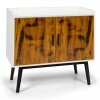 ● Durable Material and Stable Frame: This 2-door cabinet is made of high quality MDF, which ensures strong durability and stability. 4 slightly tilted metal legs with powder coated finish provide excellent rust resistance and strong support. More, non-slip foot pads on the bottom can effectively protect your floor from scratches.