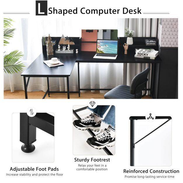 ● L-shaped Corner Design: The compact computer desk uses unique L-shaped design, which fits nicely in a corner to make the most of your space. It can be placed in your dormitory, small apartment and other small places with limited space. You can rest your feet at a comfortable level due to its durable footrest.