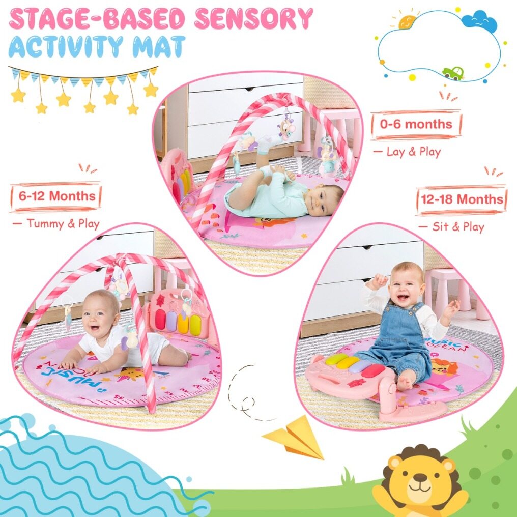 【Sensory Toy for Year’s Companionship】 This colorful piano gym mat is an ideal sensory toy for newborns lifting their heads to toddlers learning how to walk. It has 4 stages of play--lay & play, tummy time, sit & play, take-along, as the baby’s little ego starts to emerge.