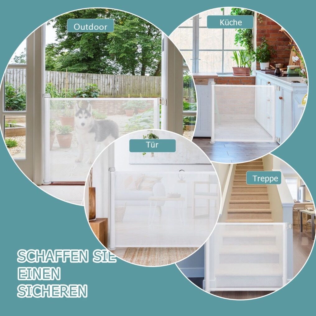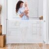 Retractable & Space-saving Design: Our 85.5 cm tall baby gate can extend up to 132 cm in width, thus fitting most doors. At the same time, it is very smooth to pull out and roll up. When not in use, the baby gate can be fully retracted to save space.