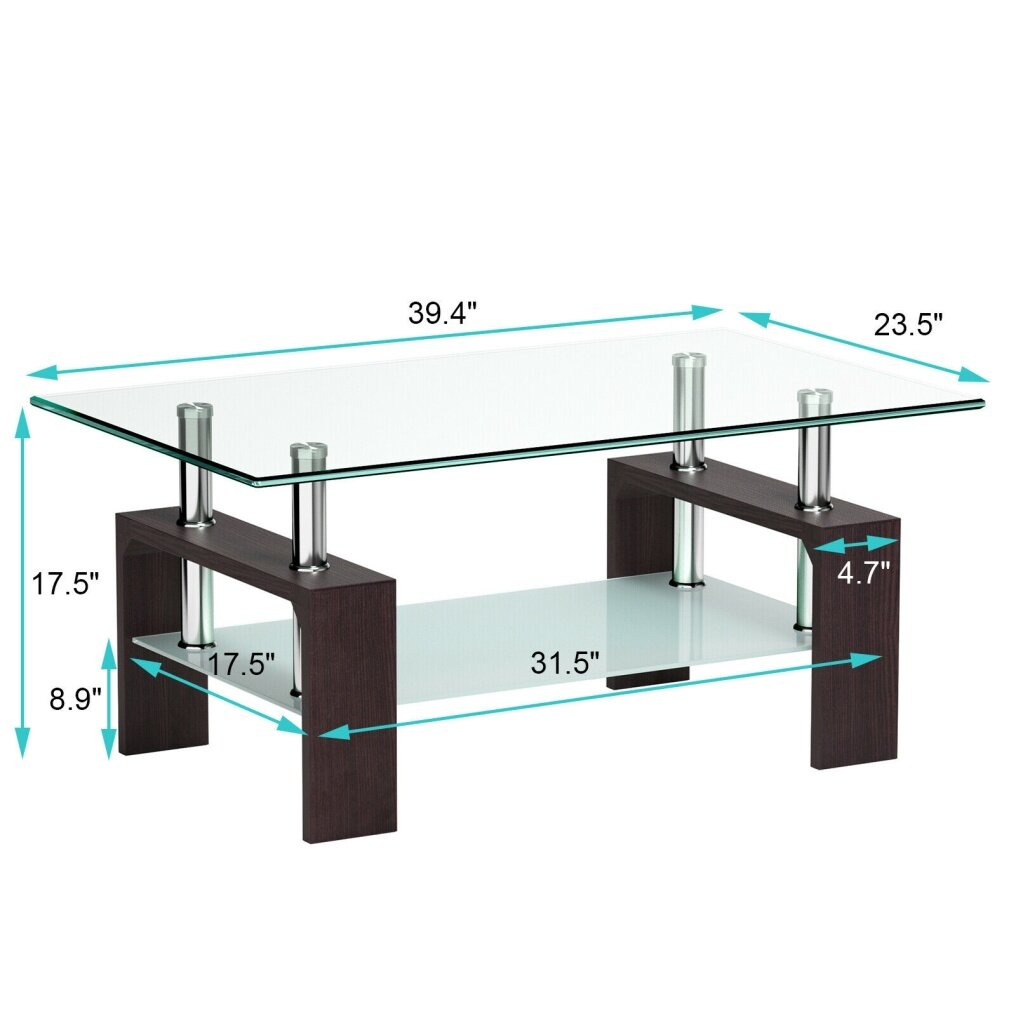 ● 2 Shelves With Spacious Storage Room: With a 39.5" x 24" tempered glass at the top and a 31.5" x 18" bottom shelf, this coffee table provides large area for you to store beverages, fruits, magazines and other items.