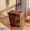 - Use the handwoven laundry hamper to hide away your dirty clothes