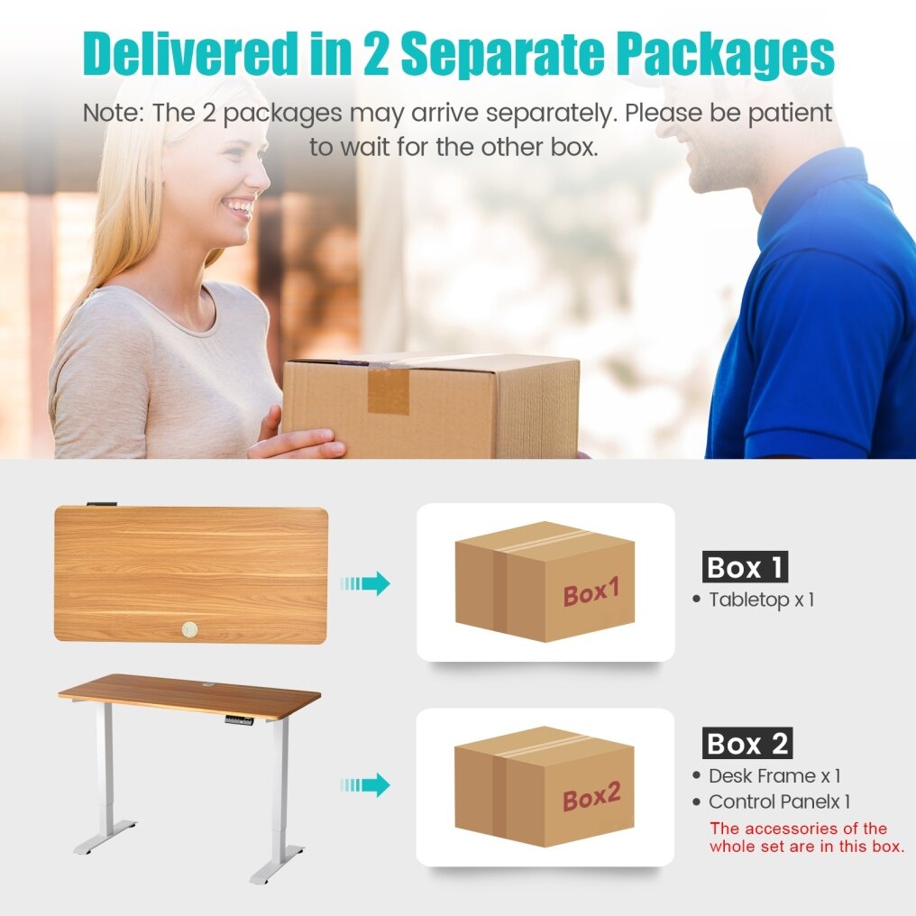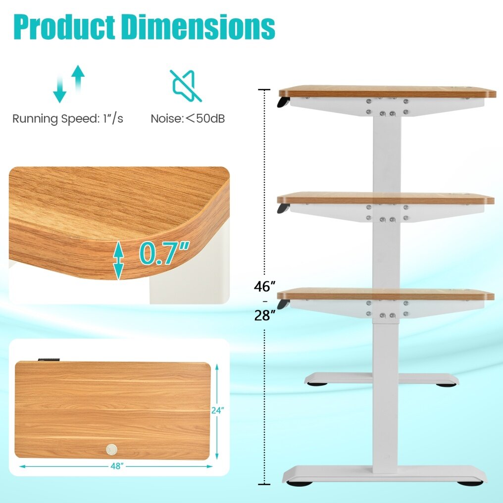 ● Ergonomic and Thoughtful Design: This stand-up desk seamlessly transitions from sitting to standing height for minimum spine fatigue. You can raise or lower the desk to your desired height by operating the control panel. Besides, the desk will stop and rebound to prevent bumps and scratches when there is an obstacle under the desk during the moving process.
