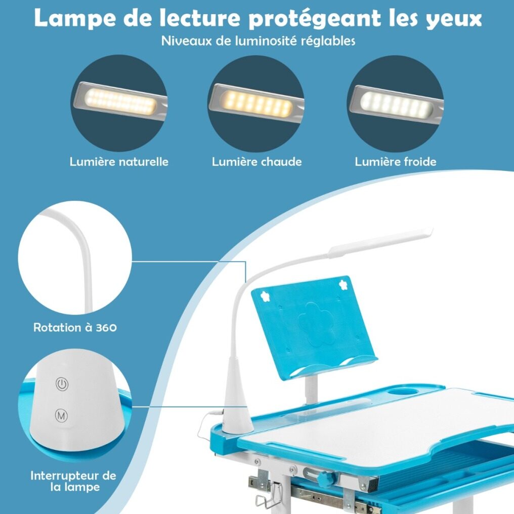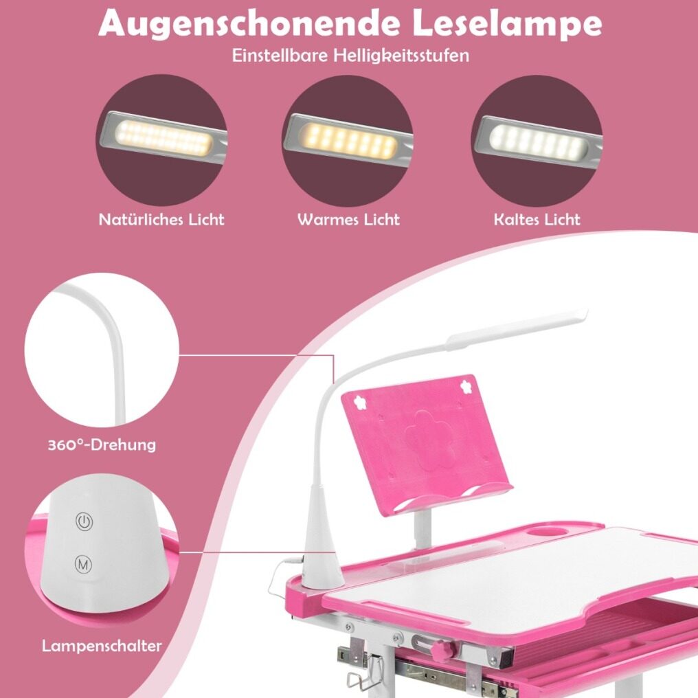 ● LED Light and Book Stand: The desk is equipped with a detachable LED light, which can be freely adjusted or rotated. More, it offers three different modes--warm light, cold light and natural light. Kids can adjust the brightness to protect vision. Plus, the rotatable book stand helps to fix the book, also with the optimal and proper distance for kids.