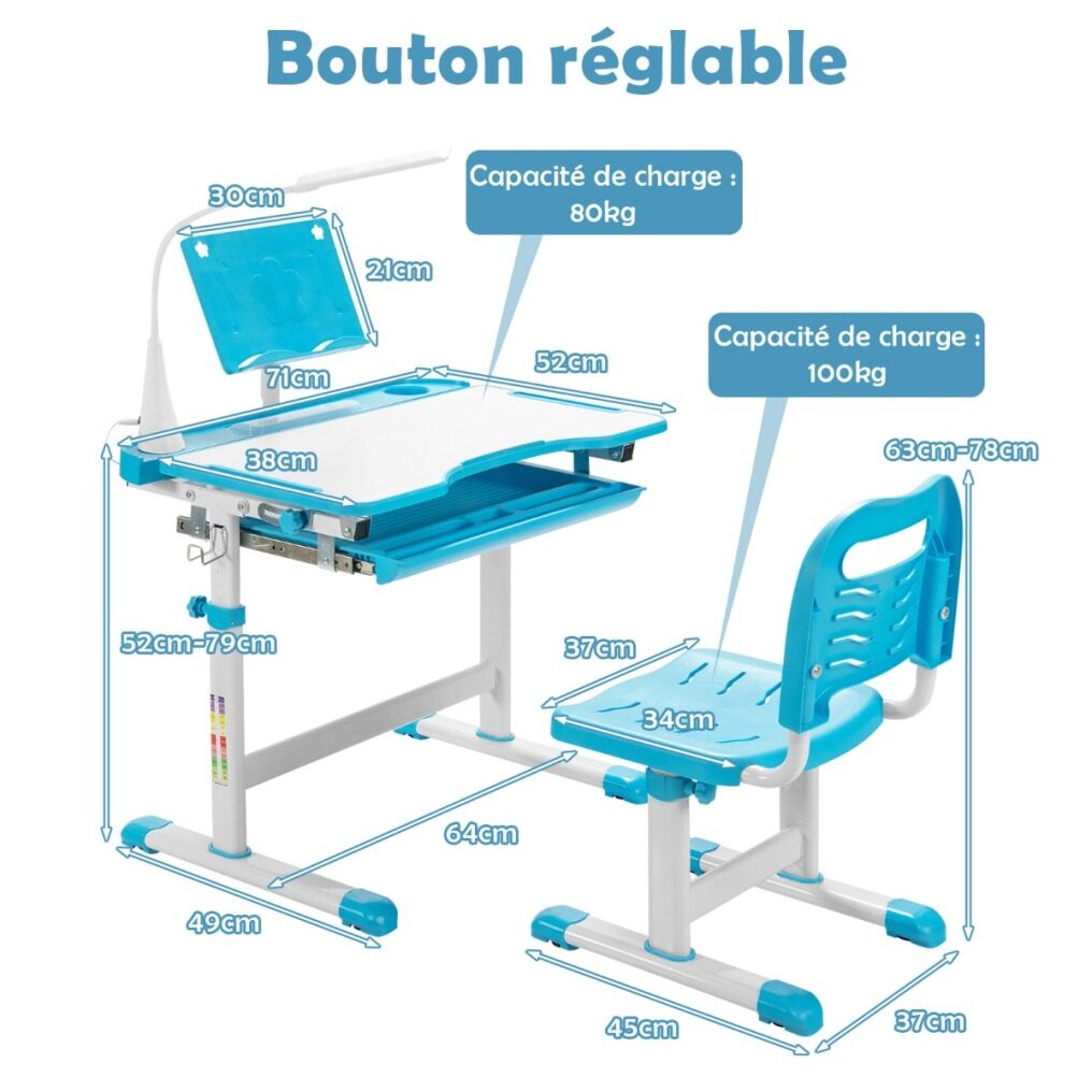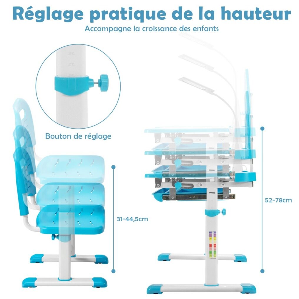 ● Keep Up with Kids: You can easily adjust the height of desk and chair to keep up with fast-growing kids for long-term use. The height of desktop and chair seat can be adjusted from 20.5" to 31" and 12.5'' to 17.5"respectively, which aims to meet the need of kids at any age ( 4 years +)