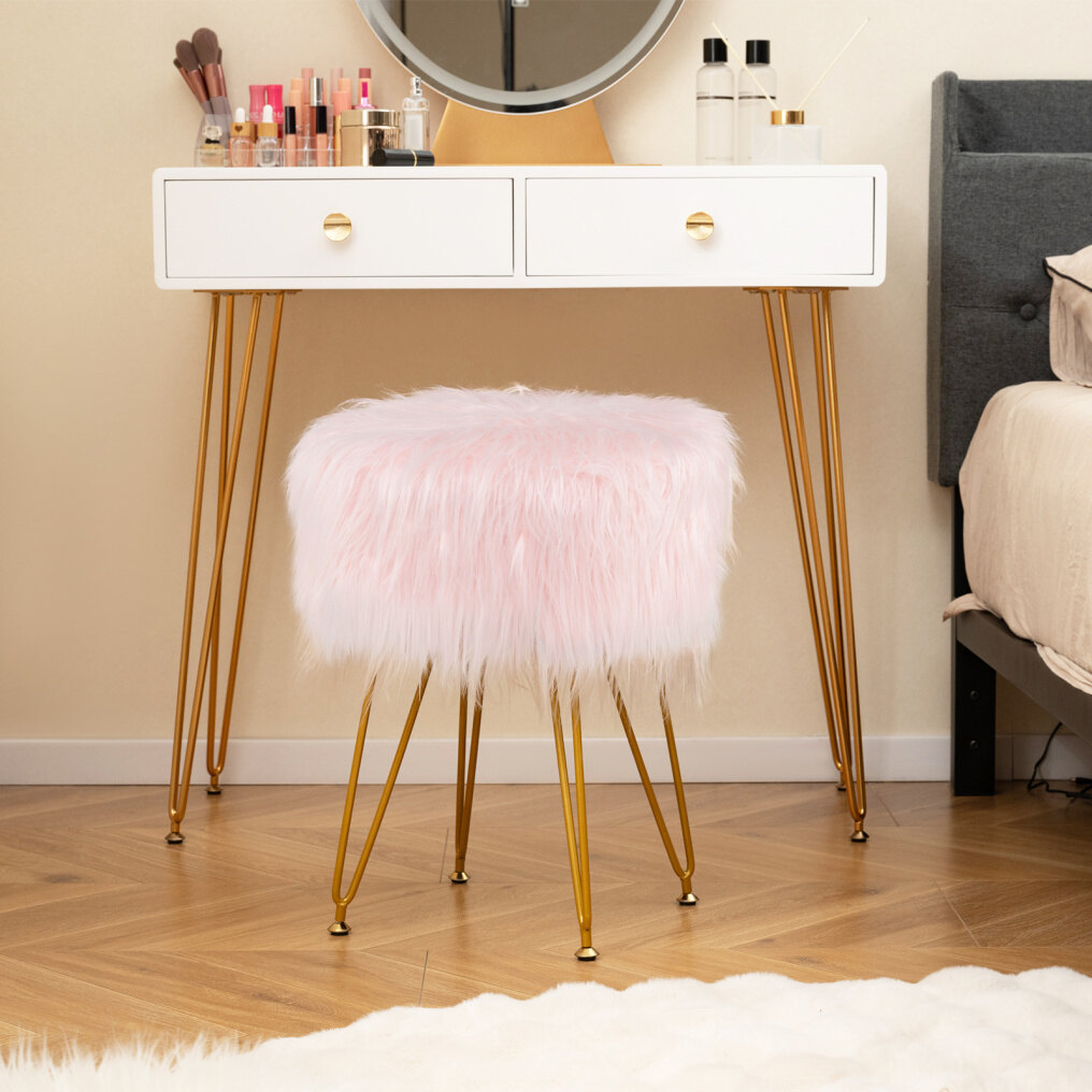 This stylish and modern designed furry ottoman is exquisite furniture in your room. Featured with heavy-duty and reinforced metal frame, our vanity stool ensures a long term use. Besides, the stylish hair pin legs along with the anti-slip foot pads can ensure a great stability during use. Its maximum weight capacity is up to 150kg, which is safe enough for daily use. Moreover, thanks to its compact design, it can be easily placed under the vanity table or moved to narrow places, which saves storage space.