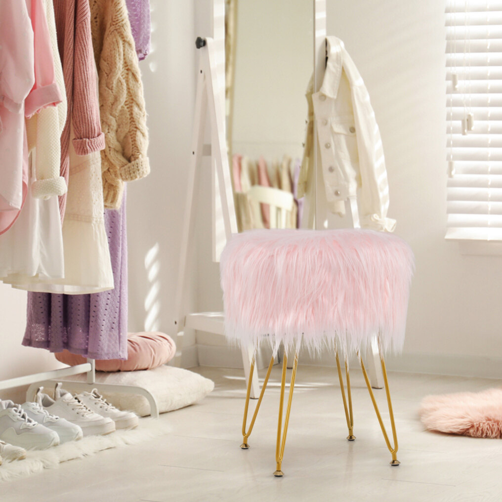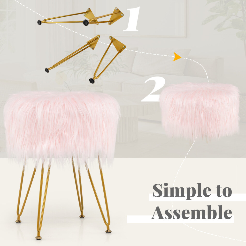 Easy Assembly Process: Our stylish furry ottoman comes with a clear and brief instruction, which has straight forward illustrations and descriptions. Each part and screw has its own code to take you little time and energy. Let the soft padded vanity ottoman provides you with a more enjoyable makeup time!