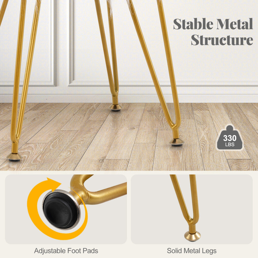 Sturdy & Durable Construction: Stool feet are made of heave-duty iron tubes, which ensures sturdiness and high durability. Its maximum load capacity is up to 150 kg. In addition, the stool feet adopt a hair pin shape to safely distribute your weight, which ensures great stability during use.