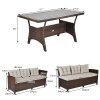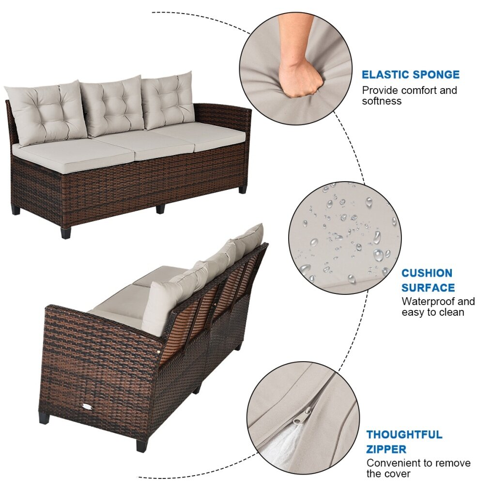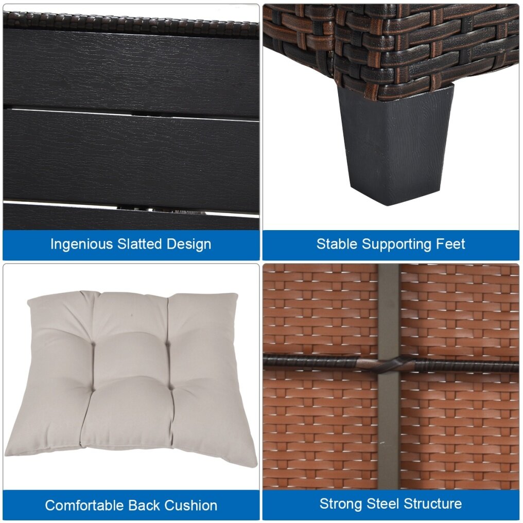 ● Steel Frame and Hand-woven Rattan: Made of high-quality steel frame, this table and sofa set is very sturdy and durable, supporting your long-term use. It's not easy to deform and shake. Besides, the steel tube is covered with hand-woven rattan, which is adaptable to all kinds of weather.
