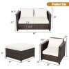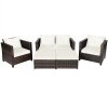 This 5-piece wicker patio furniture set includes 1 loveseat, 2 single sofas, and 2 ottomans, which is a great choice for you to spend your leisure time.