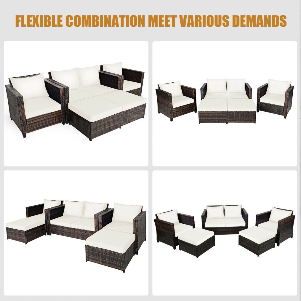 With ample space, you can use this patio furniture set in family gatherings or business conversations. This multifunctional patio furniture set is suitable for the balcony, deck, backyard, porch, and poolside with its various styles. Crafted with a durable steel frame and wrapped in weather-resistant rattan, each sofa and ottoman is durable enough to provide long-time service. 6 soft cushions and 4 pillows will give you a comfortable sitting experience. Plus, thick cushions with detachable covers can bring great convenience to replace and clean.