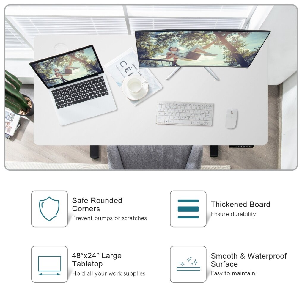 ● Spacious Working Area: Large working area is beneficial to working efficiency improvement. 47” x 24” tabletop provides a spacious working surface to hold a great number of office supplies, such as monitors, keyboards, books, files, and more.