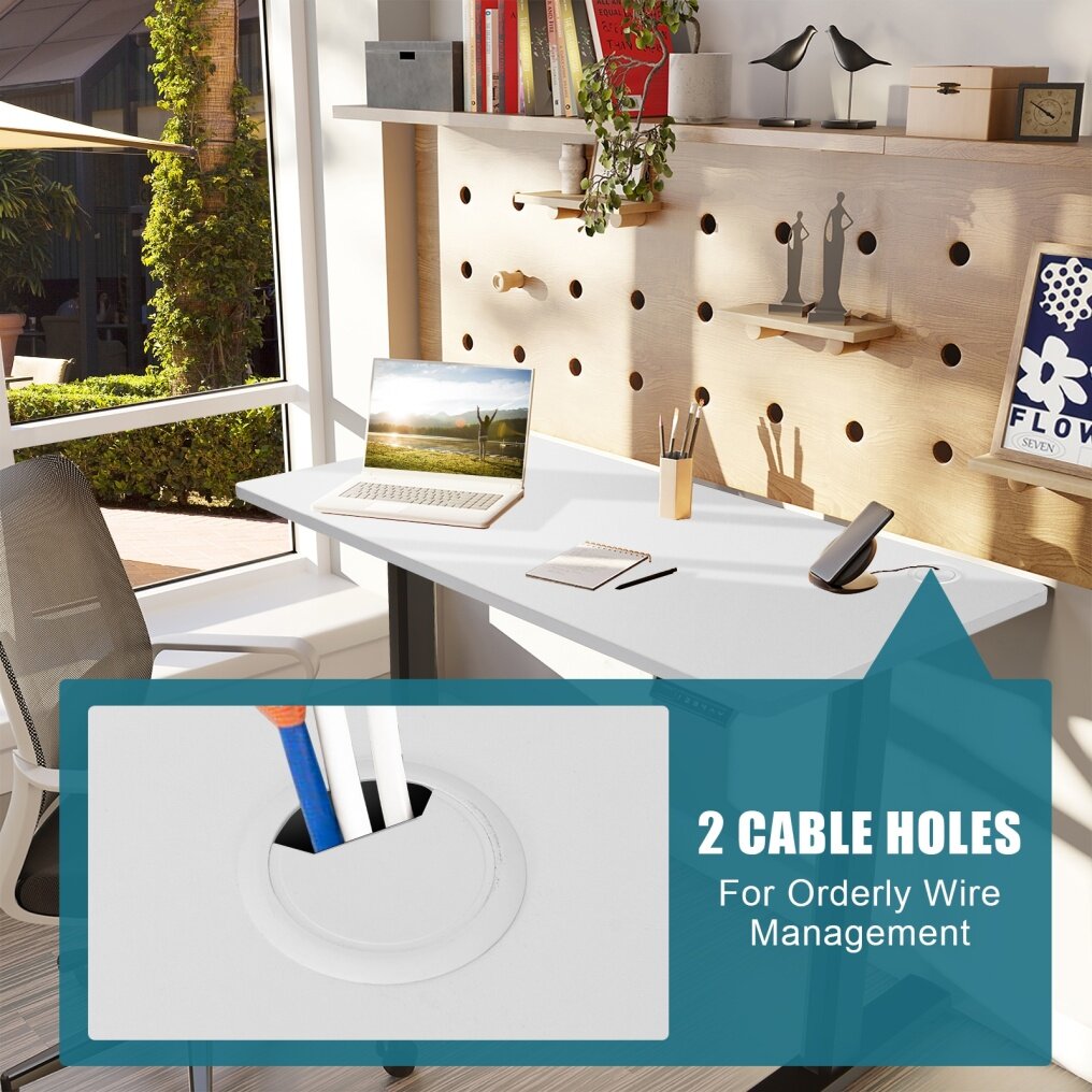 ● Dual Cable Holes and Round Corner: There are 2 cable management holes on the desktop to help you organize messy wires. To give you maximum safety protection, the tabletop is designed with round corners to prevent you from injury.
