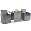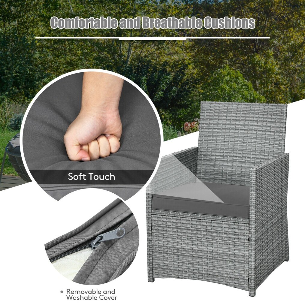 ● Selected Materials: Made of rustproof steel frame wrapped with weather-resistant PE rattan, this patio bistro set allows you to leave it outside. Meanwhile, tempered glass is studier and safer than other common glasses. And, both table and chairs have non-slip foot pads for additional stability.